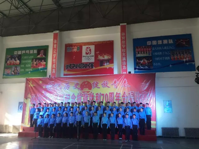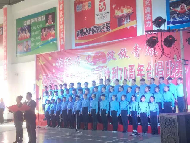 随后,汤泉谷的工作人员参加并资助了由弓长岭区中学举办的“纪念抗日战争胜利70周年”合唱比赛。